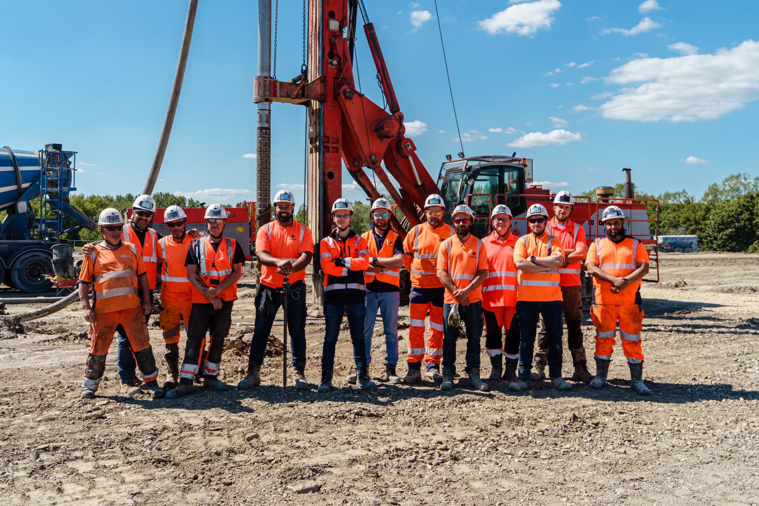 Grâce aux grandes configurations des foreuses Menard ENTECO 600, il a été possible d’atteindre 26 m de profondeur. Deux ateliers grandes profondeurs, pouvant parfois s’élever à 4 ateliers pour les colonnes courtes, ont œuvré simultanément pendant 4,5 mois.